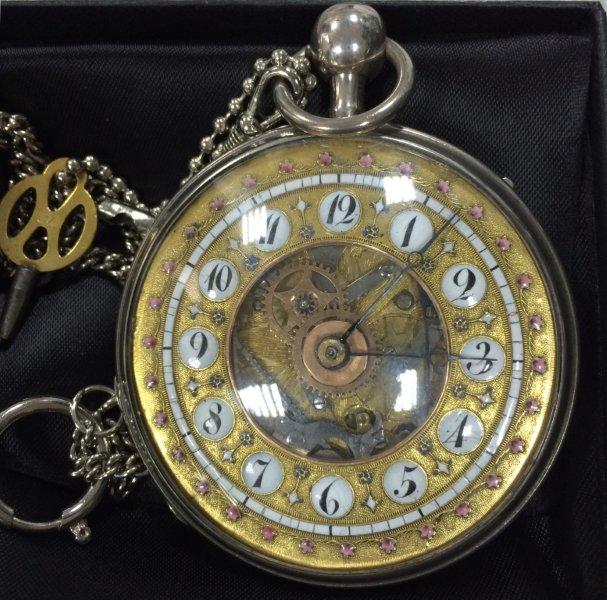 ide skôr o dobové "BREGUET STYLE " presahujúce dobový štandard. Hodinky sú osadené v striebornom plášti, majú pôvodné