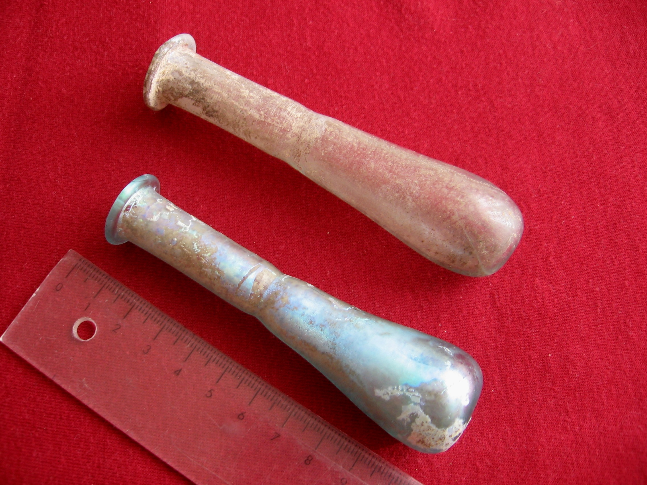po storočiach v skle korodujú. Ak má sklo na sebe vrstvu korózie, oxidu a vápenca je to pre mňa dôkaz, že to ležalo